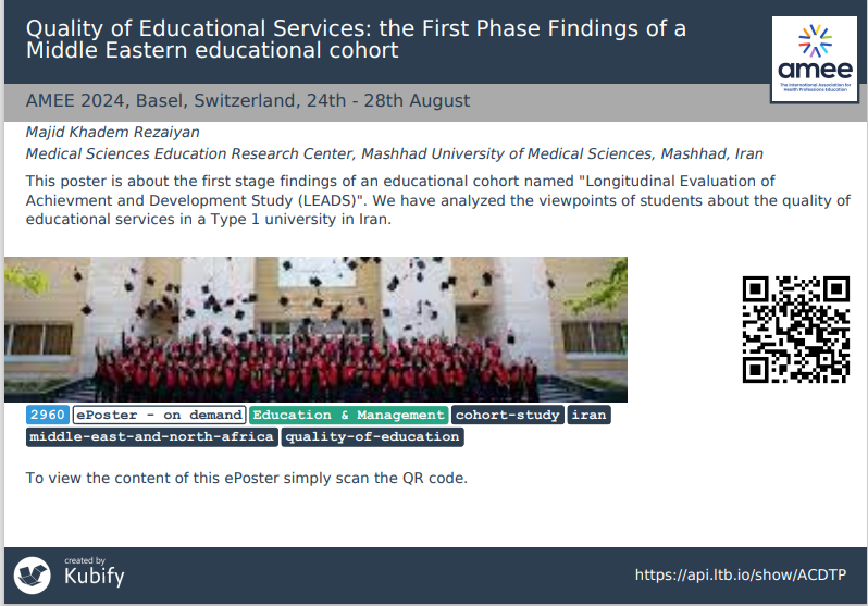 📢 با کمال افتخار اعلام میکنیم که در اولین سال ارسال چکیده، دو چکیده از اولین خروجیهای طرح کوهورت آموزشی در کنگره AMEE 2024 پذیرفته شدهاند!