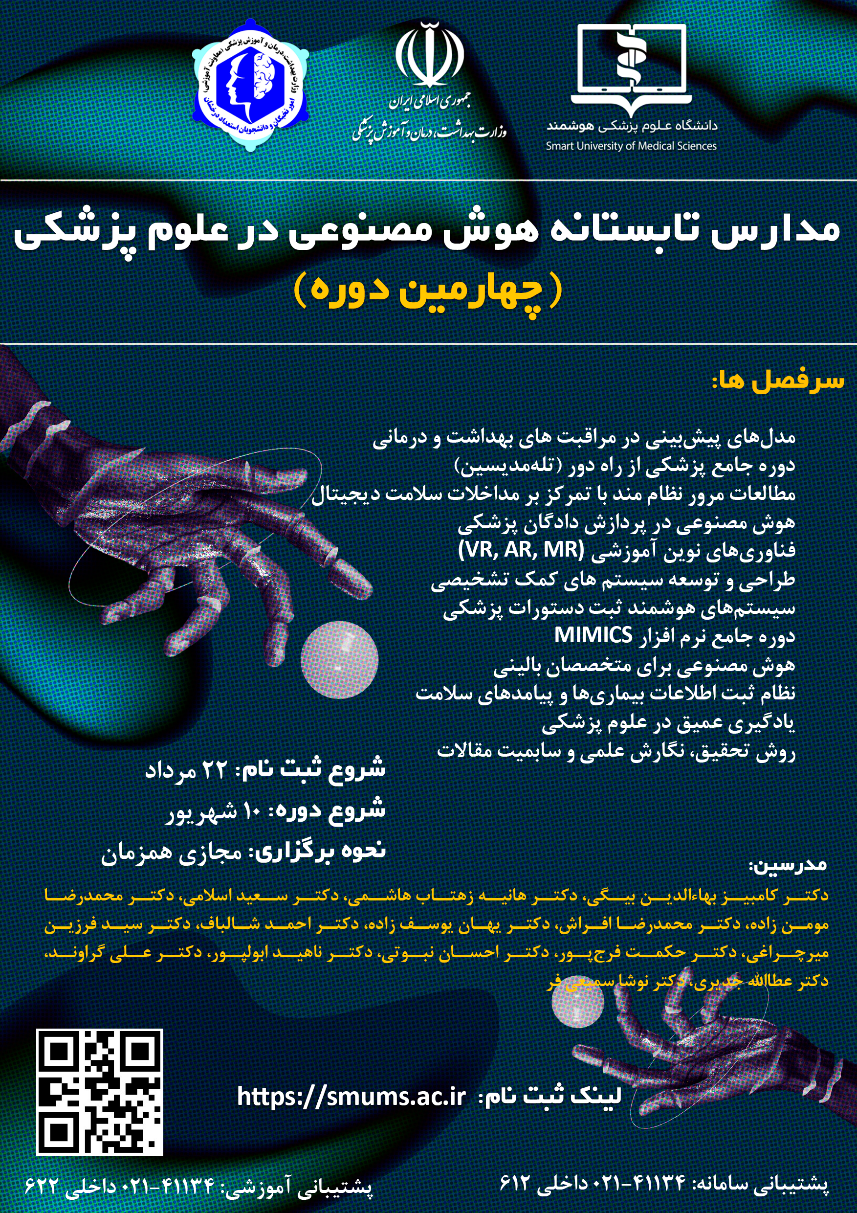 اخبار امیر محمدزاده اخبار 17 شهریور 1403 بازدید: 75 امتیاز: ( 0 Rating ) مدارس تابستانه هوش مصنوعی در علوم پزشکی امتیاز کاربران لطفا رای دهید رای 1 رای 2 رای 3 رای 4 رای 5 برای ثبت نام اینجا کلیک کنید قبلی بعدی
