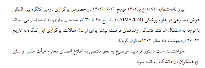 اخبار امیر محمدزاده اخبار 13 آذر 1403 بازدید: 103 امتیاز: ( 0 Rating ) تمدید زمان دومین کنگره بین المللی هوش مصنوعی در علوم پزشکی (AIMS2024) امتیاز کاربران لطفا رای دهید رای 1 رای 2 رای 3 رای 4 رای 5 قبلی بعدی