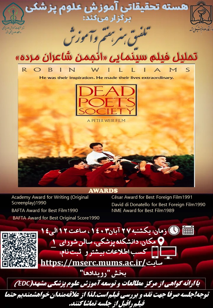 📢 پنجمین رویداد از سلسله رویداد ها با عنوان "تلفیق هنر هفتم و اموزش" با موضوع نقد فیلم های آموزشی با حضور اساتید و صاحب نظران این حوزه برگزارمی گردد.