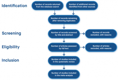 نمودارهای جریان PRISMA ابزارهای ارزشمندی برای خلاصه کردن و تجسم فرآیند انتخاب مطالعه در هر دو مرور سیستماتیک و متاآنالیز باقی می مانند. برای اطلاعات بیشتر در مورد نمودارهای جریان PRISMA، مقاله با عنوان توضیح PRISMA 2020: راهنمایی به روز و نمونه هایی برای گزارش بررسی های سیستماتیک در BMJ را بررسی کنید.